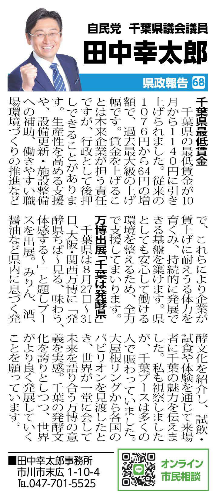 田中幸太郎の活動報告・最新情報をお届けいたします。